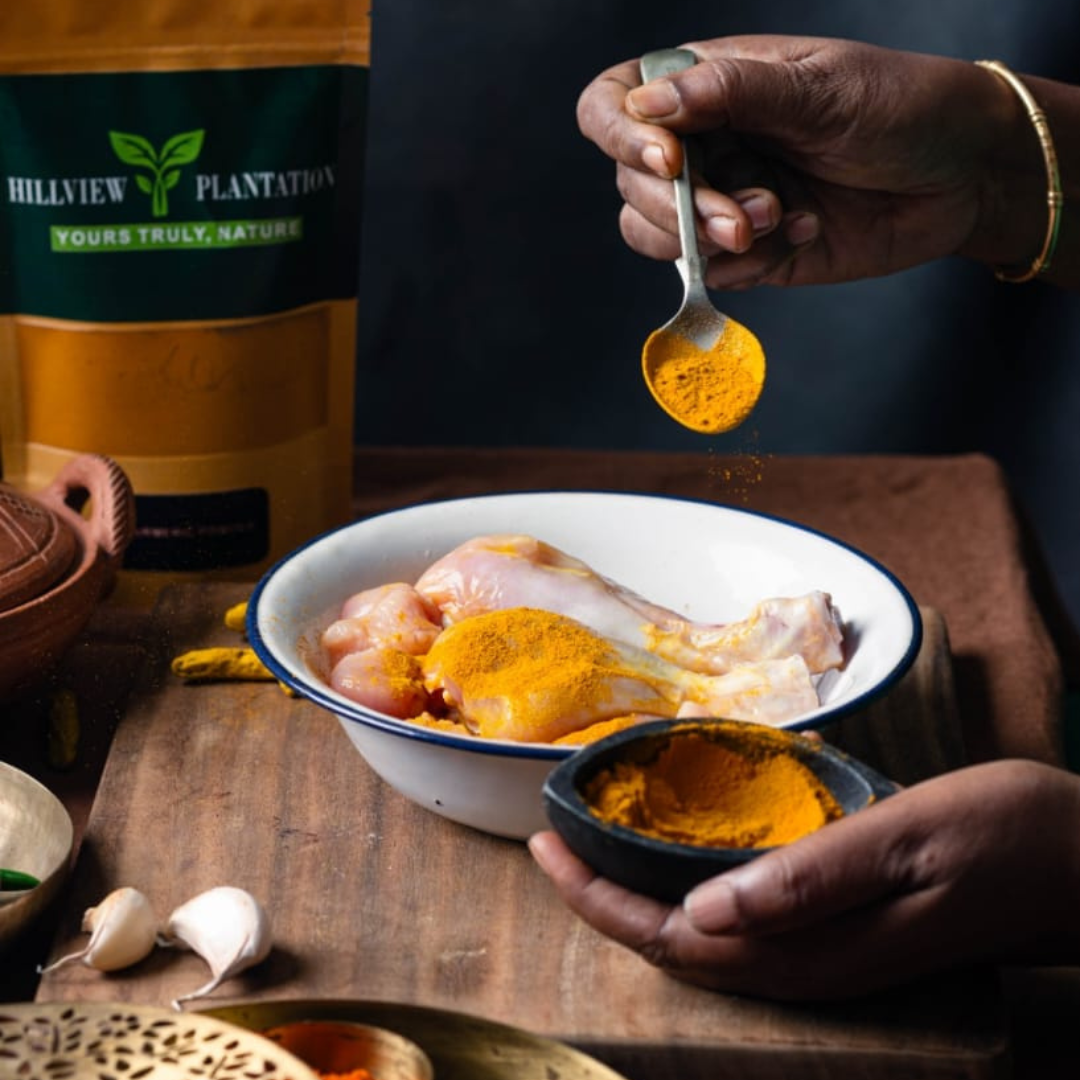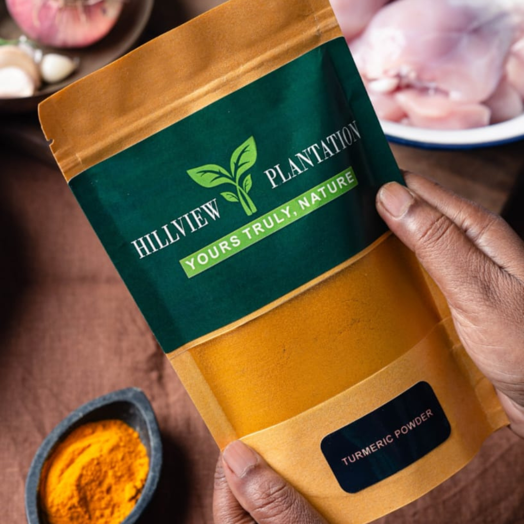 Buy turmeric powder at Hillview plantation Trichy, Tamil Nadu. We offer you fresh and natural turmeric powder. Produced from premium quality turmeric roots. It has a beautiful golden color, it is delicious, tasty and has many health benefits. Our turmeric vibrant color yellow makes your dishes look beautiful and offers inflammatory and antioxidant benefits. So our turmeric powder adds flavors and nourishment to your meals. Experience the essence of turmeric powder with Hillview Plantation.